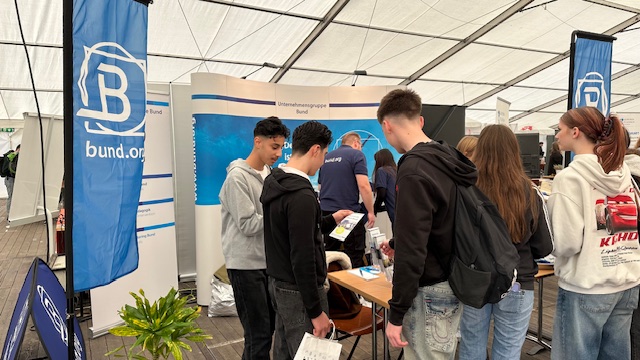 Empfangen wurden wir von engagierten Schülerinnen und Schülern der Kurt-Tucholsky-Gesamtschule in Minden, die für uns eine Vielzahl kreativer und informativer Mitmachaktionen vorbereitet hatten. Beim Papierschöpfen, Collagen gestalten, Blumenbinden und Blumenaussäen konnten unsere Schülerinnen und Schüler selbst aktiv werden und sich mit Themen rund um Nachhaltigkeit und Umweltschutz auseinandersetzen.