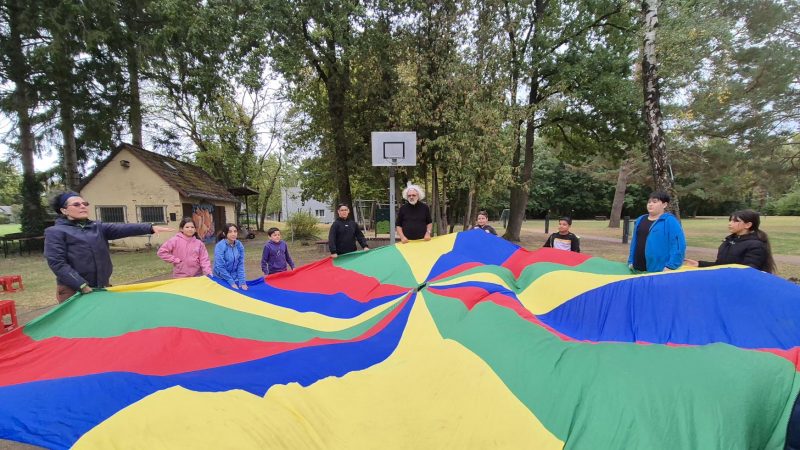 Nach einer kurzen Mittagspause lernten unsere Schülerinnen und Schüler die Teamer des Teams hand-greiflich Hannover e. V. kennen und spielten unter ihrer Anleitung verschiedene Kennenlern- und Gemeinschaftsspiele.