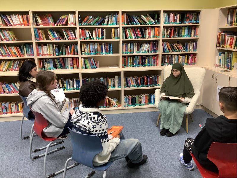 Große Unterstützung erhielt die Schule durch die Bücherei, die vielfältige Lesekisten zur Verfügung stellte. So konnte man überall im Schulgebäude lesende Schülerinnen und Schüler entdecken – ein Bild, das zeigte, wie sehr Lesen verbindet und inspiriert.