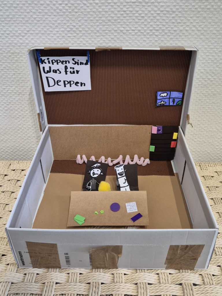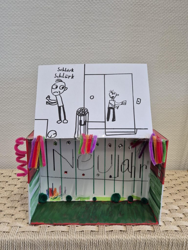 Die unteren Klassen stellten stolz ihre Lieblingsbücher vor. Besonders kreativ präsentierte sich eine fünfte Klasse: Die Schülerinnen und Schüler gestalteten ihre Bücher in liebevoll dekorierten Schuhkartons und ließen ihre Geschichten auf eine ganz besondere Weise lebendig werden.